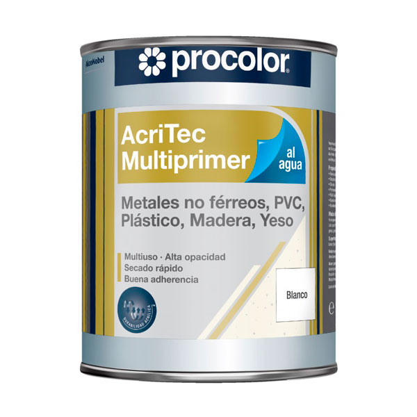 Imprimación multisuperficies acrílica. Adecuada para superficies de madera, yeso, cemento, ladrillo, aluminio, zinc, galvanizado, etc. Rendimiento 10/12 m² por litro.
